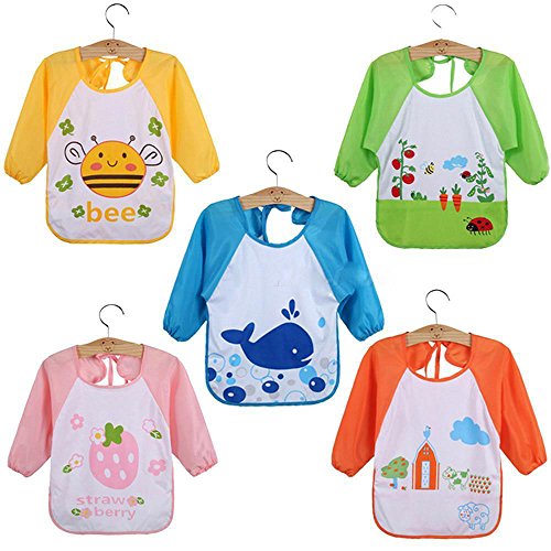 Pumpumly 長袖 エプロン 防水 ベビー お食事用 赤ちゃん 幼児 お食事