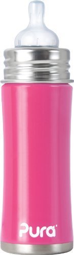 Pura Kiki Stainless Infant Bottle Stainless Steel with Natural Vent Nipple, 11 Ounce, Pretty Pink, 3 Months+ by Pura Kiki [並行輸入品]