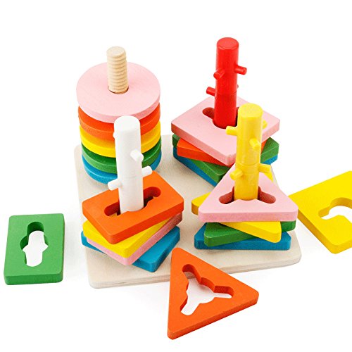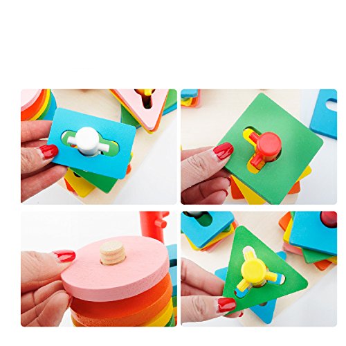 Pure Vie 幾何認知 形合わせ 積み木 型はめ パズル 幼児 子供 赤ちゃんの木の知育玩具 男の子 女の子 贈り物 誕生日クリスマスプレゼント 4点セット