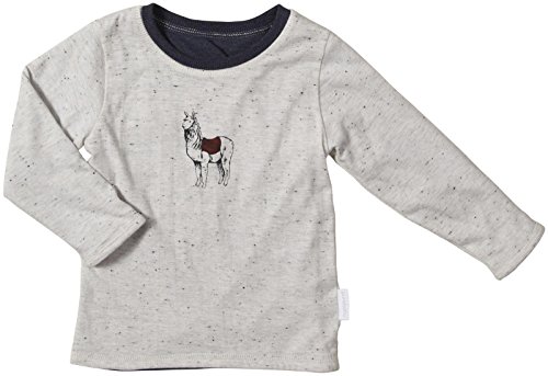 pureBabyリバーシブルTシャツベビー – BLUESTONE男の子の長袖Tシャツとラウンドネックライン。LUGHT側機能A Llama印刷Oシャツの胸と、濃いblueston側featuees両側に小さなボタン付き胸ポケット機能が導入されています。100コットンTシャツ着用でき汎用性のコールド洗濯機