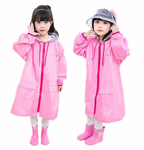 子供レインコート キッズ レインコート レインポンチョ ランドセル対応 無地 シンプル 可愛い 夜間視認 カラフル バイザー付 カッパ キッズレインウエア 子供雨具 通学 遠足 アウトドア 幼稚園 (XL, ピンク)