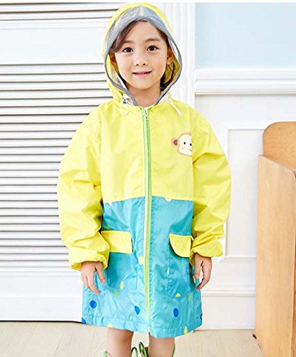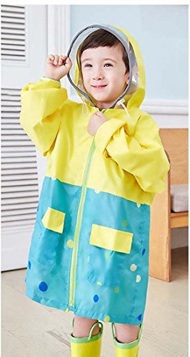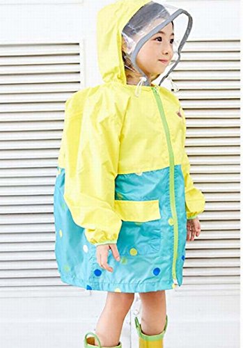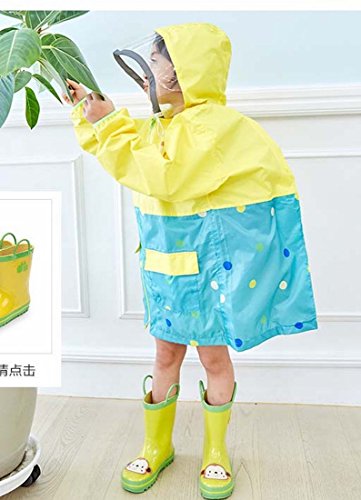 子供レインコート キッズ レインコート レインポンチョ ランドセル対応 花柄 ドット 星 可愛い 夜間視認 カラフル バイザー付 カッパ キッズレインウエア 子供雨具 通学 遠足 アウトドア 幼稚園 (M, イエロー)