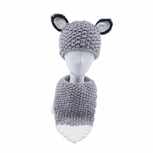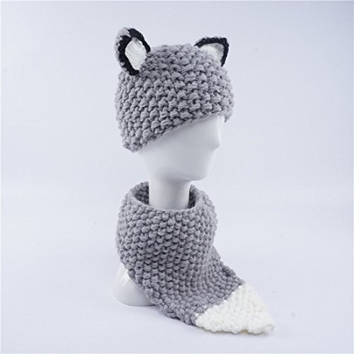 Puresino ニット帽子&マフラーのセット キッズ ベビー 耳付き ネックウォーマー 秋冬 防寒 子供用 マフラー スヌード ネックウォーマー (グレー)