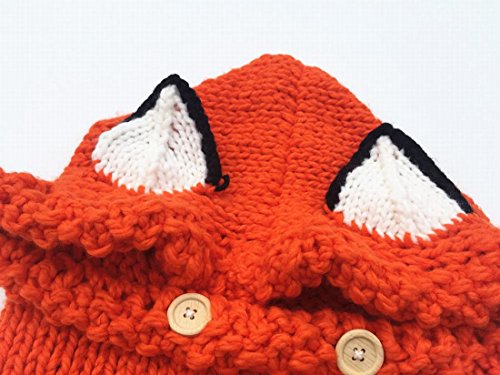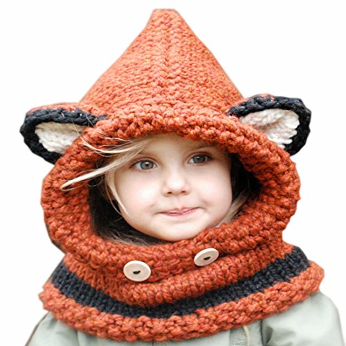 Puresino キッズ ニット帽子 ベビー 耳付き ネックウォーマー 子供用 スヌード ネックウォーマー 防寒 秋冬 狐の耳 (S, オレンジ)