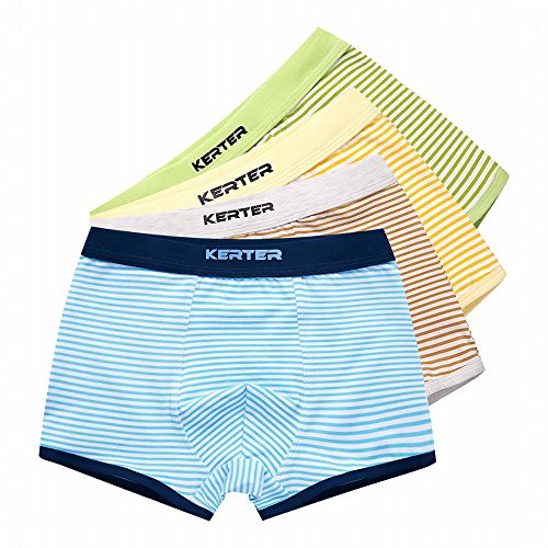 キッズ パンツ 男の子 下着 ジュニアインナーパンツ コットン ストライプ 前閉じ ボクサーパンツ 子供服 男 8歳以上 綿 2枚組 4枚組 (120, C)