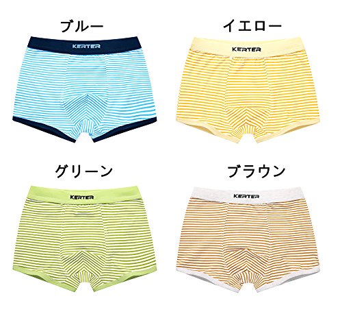 キッズ パンツ 男の子 下着 ジュニアインナーパンツ コットン ストライプ 前閉じ ボクサーパンツ 子供服 男 8歳以上 綿 2枚組 4枚組 (110, C)