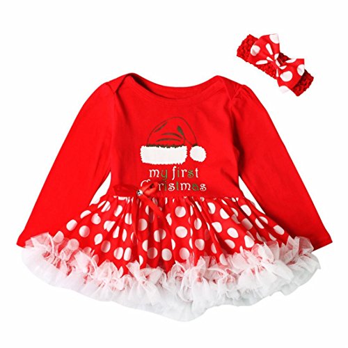Puresinoベビー キッズ 子供服 女の子 ドレス ヘアバンド付き クリスマス サンタワンピース 2点セット ロンパース コスチューム (70, D)
