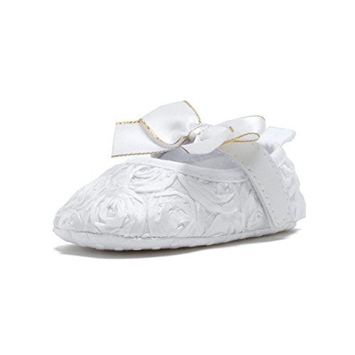 (プタス) Putars 赤ちゃん 靴 バレエシューズ 満開 バラ ロースリボン 蝶結び マジックテープ ファーストシューズ やわらかい プリンセス お姫様 歩行練習 履きやすい 履き心地いい 女の子 滑り止め 春 夏 出産お祝いプレゼント ギフト ベビー靴 キッズ ピンク ブラック ホワイト 11cm-13cm 1-12ヶ月 (11, ホワイト)