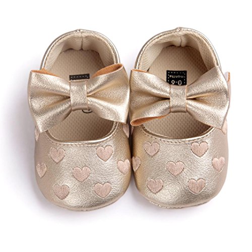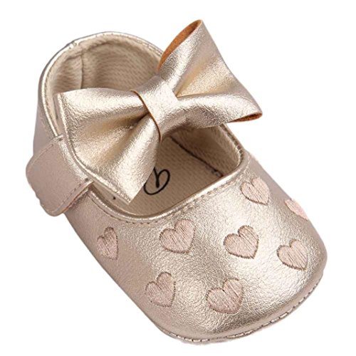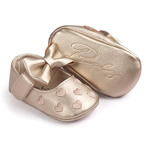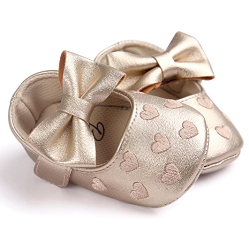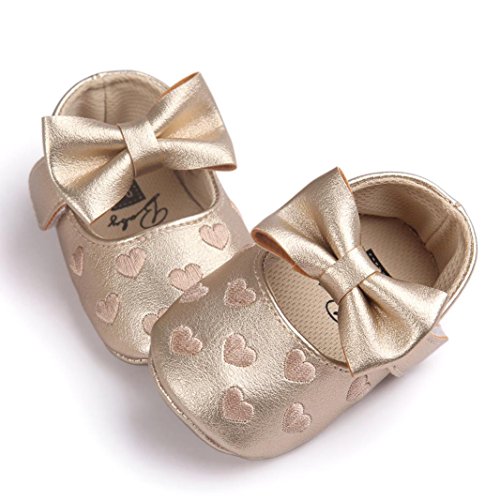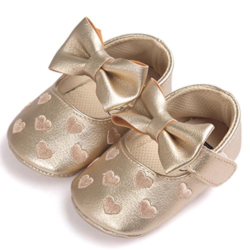 (プタス) Putars 赤ちゃん 靴 ファーストシューズ ドレスシューズ ハート型柄 蝶結び 刺繍 やわらかい プリンセス お姫様 歩行練習 履き心地いい 女の子 滑り止め 出産お祝いプレゼント ギフト (12, ゴールド)