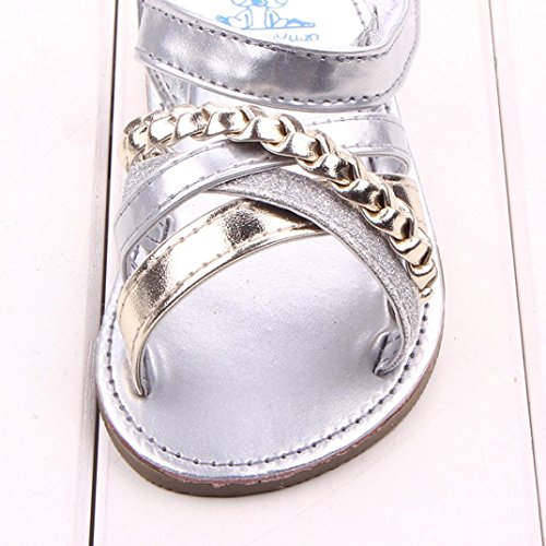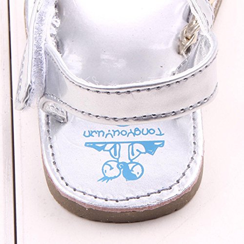 (プタス) Putars 赤ちゃん靴 夏 サンダル 金色 銀色 クロス模様 縄編み ファーストシューズ やわらかい 歩行練習 履きやすい 履き心地いい マジックテープ 女の子 ベビーシューズ 軽量 滑り止め 出産お祝いプレゼント ギフト ベビー靴 キッズ ゴールド シルバー 11cm-13cm 1-12ヶ月 (11, シルバー)