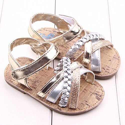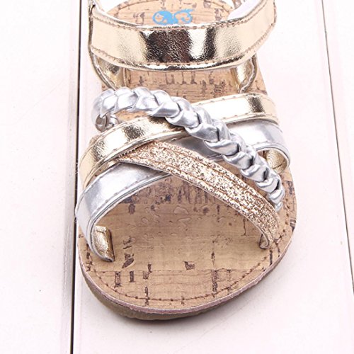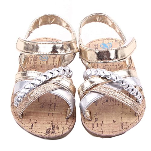 (プタス) Putars 赤ちゃん靴 夏 サンダル 金色 銀色 クロス模様 縄編み ファーストシューズ やわらかい 歩行練習 履きやすい 履き心地いい マジックテープ 女の子 ベビーシューズ 軽量 滑り止め 出産お祝いプレゼント ギフト ベビー靴 キッズ ゴールド シルバー 11cm-13cm 1-12ヶ月 (11, ゴールド)