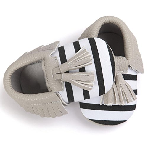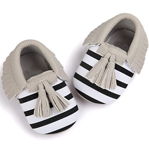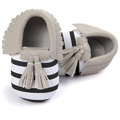 (プタス) Putars 赤ちゃん 靴 スリッポン フリンジ 縞模様 ファーストシューズ やわらかい 歩行練習 履きやすい 履き心地いい 女の子 男の子 つま先保護 軽量 滑り止め 春 夏 出産お祝いプレゼント ギフト ベビーシューズ キッズ ゴールド グレー ブラック 11cm-13cm 1-12ヶ月 (11, グレー)