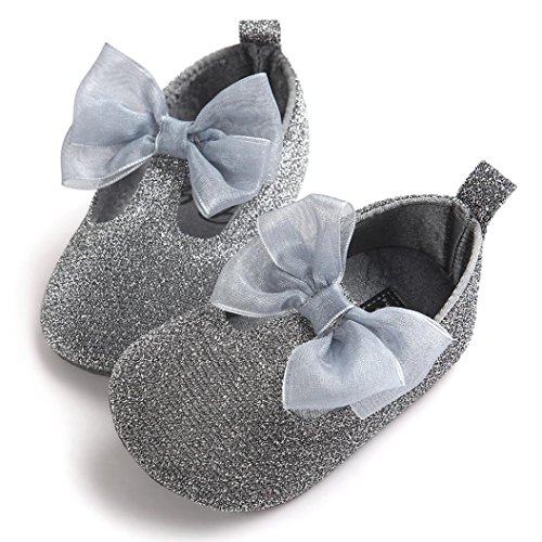 (プタス) Putars 赤ちゃん 靴 ファーストシューズ ドレスシューズ 蝶結び やわらかい プリンセス お姫様 歩行練習 履き心地いい 女の子 滑り止め 出産お祝いプレゼント ギフト (12, グレー)