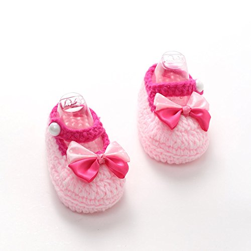 (プタス) Putars 赤ちゃん靴 羊毛 ファーストシューズ メリヤス編み セーター質感 女の子 男の子 お花 デイジー 蝶結び サンダル 新生児 羊毛製 やわらかい 足保護 歩行練習 通気性良い 履きやすい 履き心地いい 軽量 出産お祝いプレゼント ギフト ベビーシューズ キッズ ピンク (蝶結び)