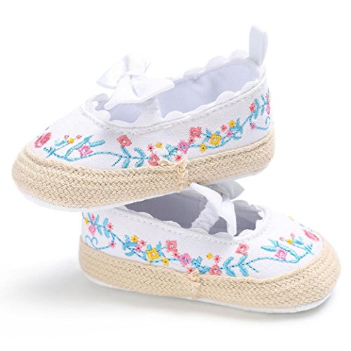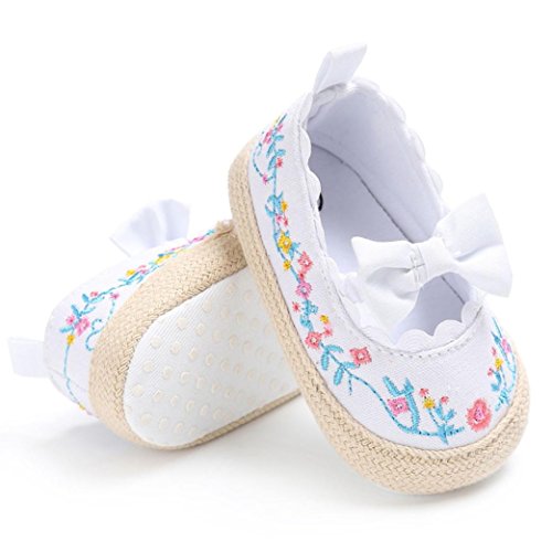 (プタス) Putars 赤ちゃん 靴 スリッポン 刺繍 お花柄 蝶結び キャンバス ファーストシューズ コットン やわらかい つま先保護 プリンセス 歩行練習 履きやすい 履き心地いい 女の子 滑り止め 春 夏 出産お祝いプレゼント ギフト ベビー靴 キッズ ブラック ピンク ホワイト 11cm-13cm 1-12ヶ月 (13, ホワイト)