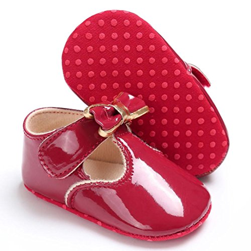 (プタス) Putars 赤ちゃん 靴 エナメル ドレスシューズ 蝶結び マジックテープ ファーストシューズ やわらかい プリンセス お姫様 歩行練習 履きやすい 履き心地いい 女の子 滑り止め 春 夏 出産お祝いプレゼント ギフト ベビー靴 カーキ ピンク パープル レッド ホワイト 11cm-13cm 1-12ヶ月 (13, レッド)
