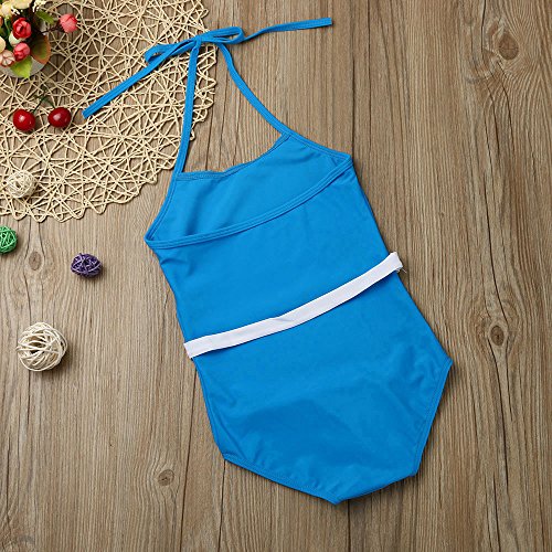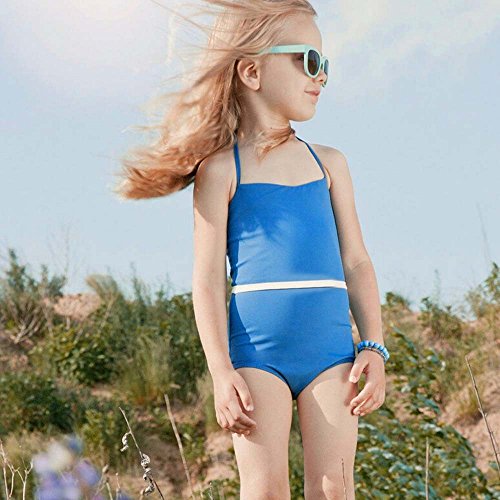 (プタス)Putars 子供用 ガールズ 水着 ワンピース ホルターネック シンプル ブルー 快適 水泳 スイミング ビーチ 温泉 キッズ水着 かわいい オシャレ ファッション 2-7歳