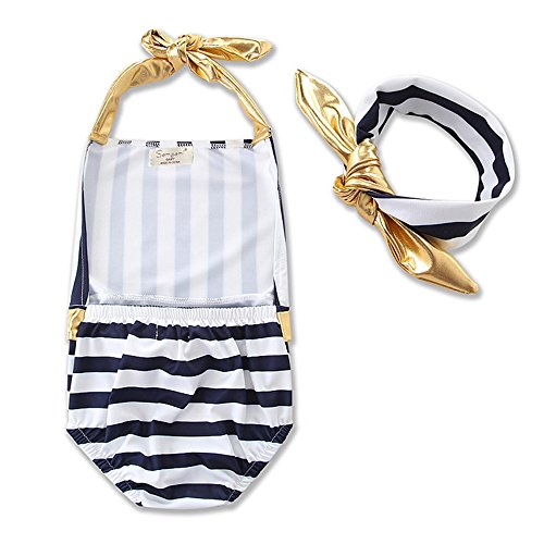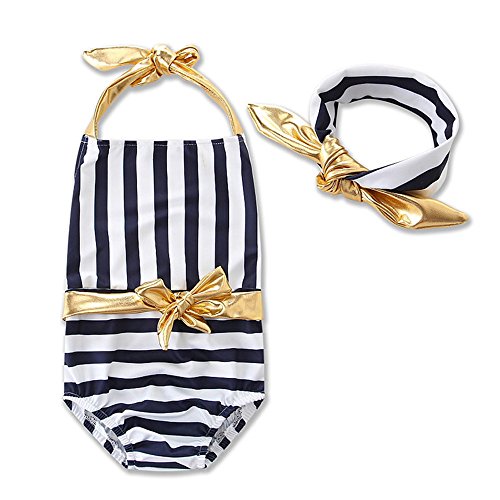 (プタス)Putars 子供用 ガールズ 水着 ワンピース ホルターネック バックレス 縞模様 ヘアリボン付き 快適 水泳 スイミング ビーチ 温泉 キッズ水着 かわいい オシャレ ファッション 2-6歳