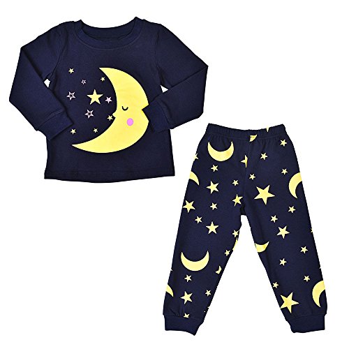 (プタス) Putars秋と冬の子供の長袖のズボンダークブルーのスーツ星の月の星のパターンパジャマのセータースポーツウェア幼児の服 24ヶ月 - 5歳
