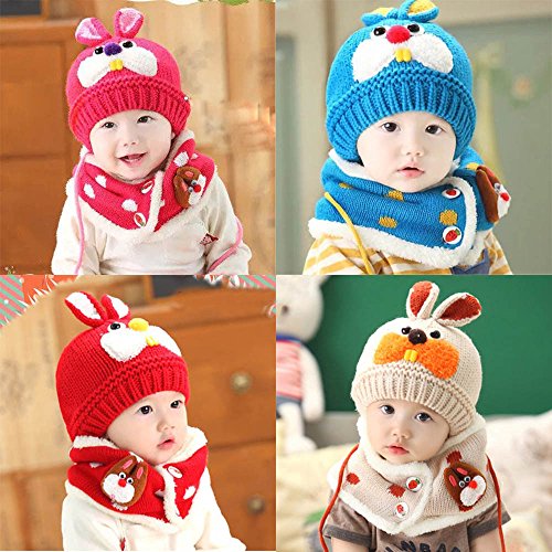 (プタス)Putars 子供用 帽子 ニット帽 マフラー 二点セット うさぎ柄 女の子 男の子 五色 耳保護 防寒 防風 暖かい 冬 可愛い 新生児 記念日 プレゼント