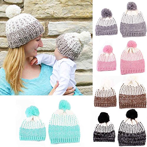 (プタス)Putars 子供用 帽子 ニット帽 親子ペア ポンポン 女の子 男の子 五色 耳保護 防寒 防風 暖かい 冬 可愛い 新生児 記念日 プレゼント