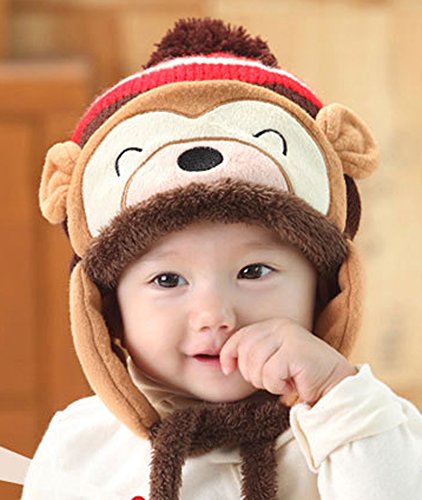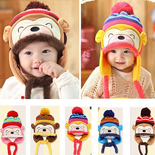 (プタス)Putars 子供用 帽子 ニット帽 ポンポン お猿柄 耳あて付き 男の子 五色 耳保護 防寒 防風 暖かい 冬 可愛い 新生児 記念日 プレゼント