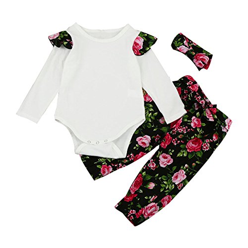 (プタス)Putars ベビー服 子供服 ロンパース 女の子 長袖 フリル 花柄 ヘアバンド付き 可愛い 春 秋 冬 新生児 歩行服 出産お祝い 旅行 記念日 プレゼント 6-24ヶ月