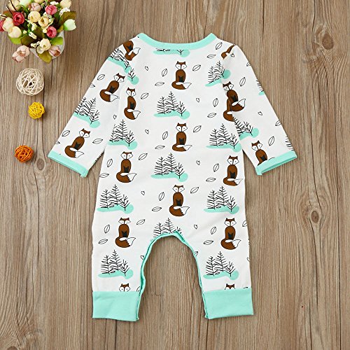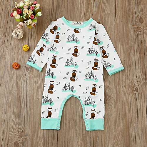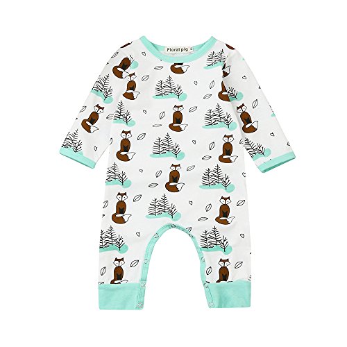 (プタス)Putars ベビー服 子供服 ロンパース 女の子 男の子 長袖 総柄 フォックス柄 動物柄 可愛い 秋 冬 新生児 歩行服 出産お祝い 記念日 プレゼント 3-18ヶ月