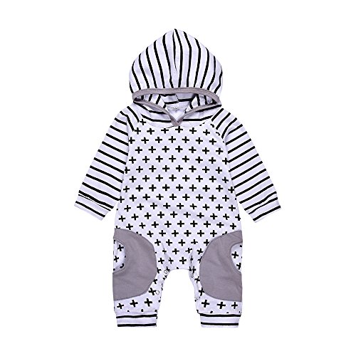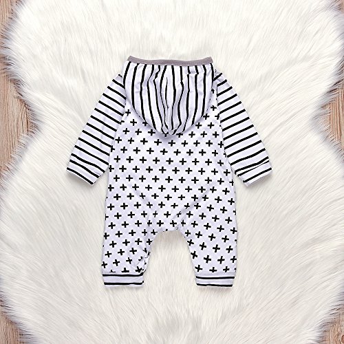 (プタス)Putars ベビー服 子供服 ロンパース 男の子 パーカー 長袖 クロス柄 ストライプ柄 可愛い 秋 冬 新生児 歩行服 出産お祝い 記念日 プレゼント 6-24ヶ月
