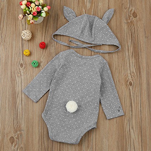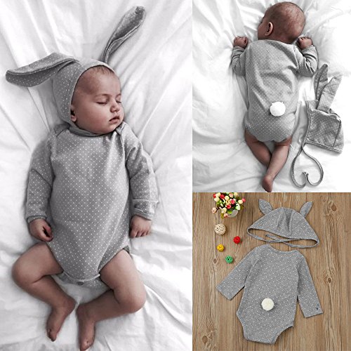 (プタス)Putars ベビー服 子供服 ロンパース 女の子 男の子 長袖 水玉柄 ウサギ模様 兎耳 おしっぽ付き 可愛い 秋 冬 新生児 歩行服 出産お祝い 記念日 プレゼント 3-18ヶ月