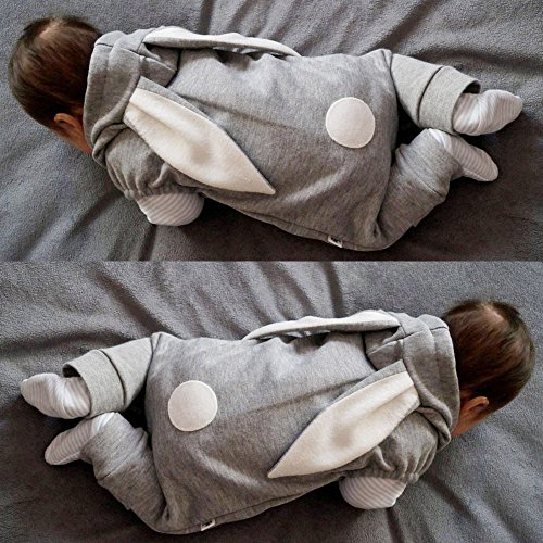 (プタス)Putars ベビー服 子供服 ロンパース 女の子 男の子 パーカー ノースリーブ うさぎ模様 耳付き 可愛い 秋 冬 新生児 歩行服 出産お祝い 記念日 プレゼント 0-24ヶ月