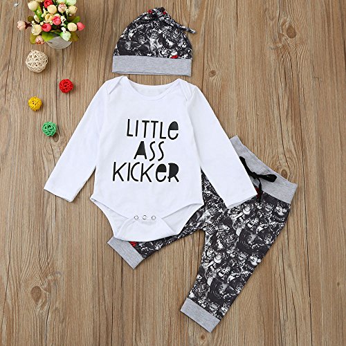 (プタス)Putars ベビー服 子供服 ロンパース 上下セット 男の子 長袖 LITTLE ASS KICKER 帽子付き 可愛い 秋 冬 新生児 歩行服 出産お祝い 記念日 プレゼント 0-18ヶ月