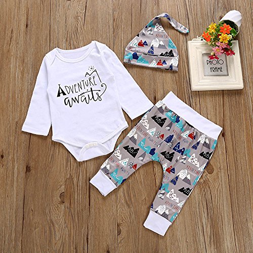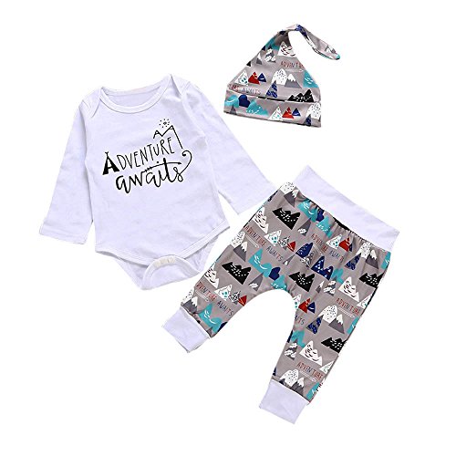 (プタス)Putars ベビー服 子供服 ロンパース 上下セット 女の子 男の子 長袖 ADVENTURE AWAITS 帽子付き 可愛い 秋 冬 新生児 歩行服 出産お祝い 記念日 プレゼント 0-24ヶ月