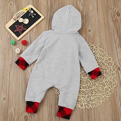 (プタス)Putars ベビー服 子供服 ロンパース 男の子 長袖 パーカー グレー チェック柄 可愛い 秋 冬 新生児 歩行服 出産お祝い 記念日 プレゼント 0-24ヶ月