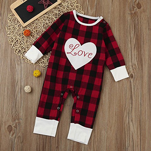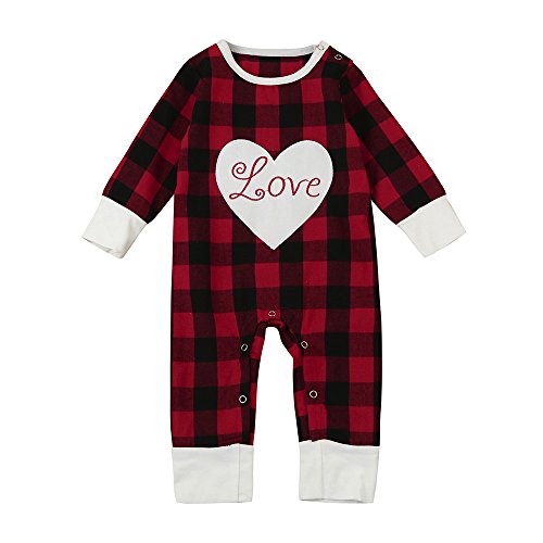 (プタス)Putars ベビー服 子供服 ロンパース 女の子 長袖 チェック柄 ハート柄 LOVE可愛い 秋 冬 新生児 歩行服 出産お祝い 記念日 プレゼント 0-24ヶ月