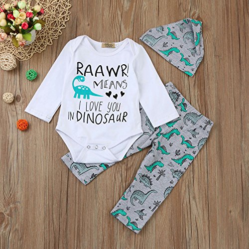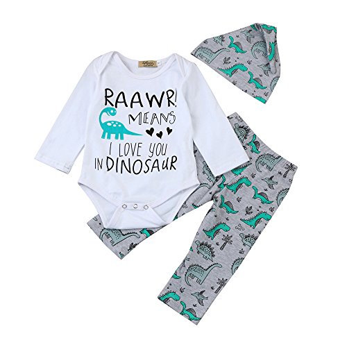 (プタス)Putars ベビー服 子供服 ロンパース 上下セット 女の子 男の子 長袖 恐竜柄 帽子付き 可愛い 秋 冬 新生児 歩行服 出産お祝い 記念日 プレゼント 0-18ヶ月
