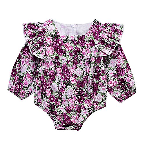 (プタス)Putars ベビー服 子供服 ロンパース 女の子 パフ袖 フリル袖 総柄 花柄 可愛い 秋 冬 新生児 歩行服 出産お祝い 記念日 プレゼント 0-18ヶ月