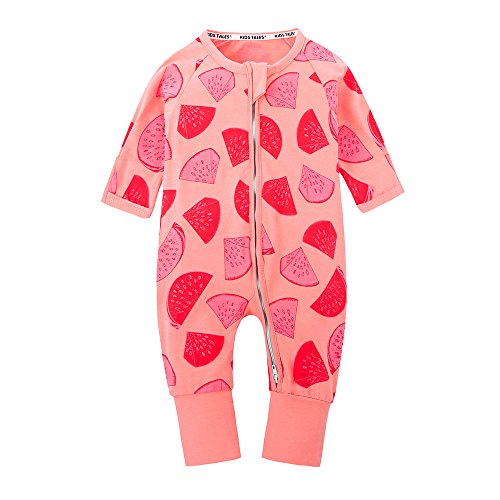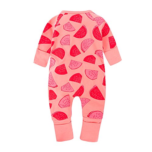 (プタス)Putars ベビー服 子供服 ロンパース 女の子 長袖 スイカ柄 可愛い 秋 冬 新生児 歩行服 出産お祝い 記念日 プレゼント 0-24ヶ月