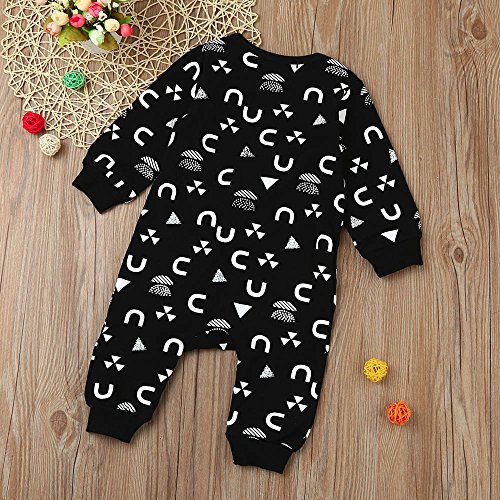 (プタス)Putars ベビー服 子供服 ロンパース 男の子 長袖 総柄 ブラック 可愛い 秋 冬 新生児 歩行服 出産お祝い 記念日 プレゼント 0-18ヶ月