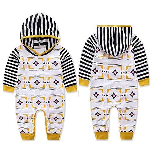 (プタス)Putars ベビー服 子供服 ロンパース 女の子 男の子 パーカー 長袖 ストライプ柄 幾何学模様 可愛い 秋 冬 新生児 歩行服 出産お祝い 記念日 プレゼント 0-24ヶ月