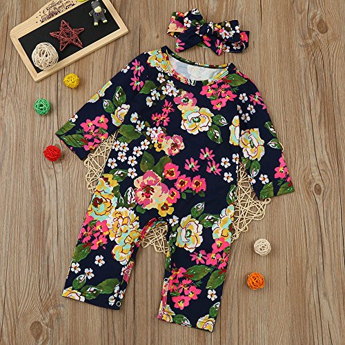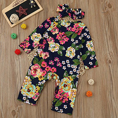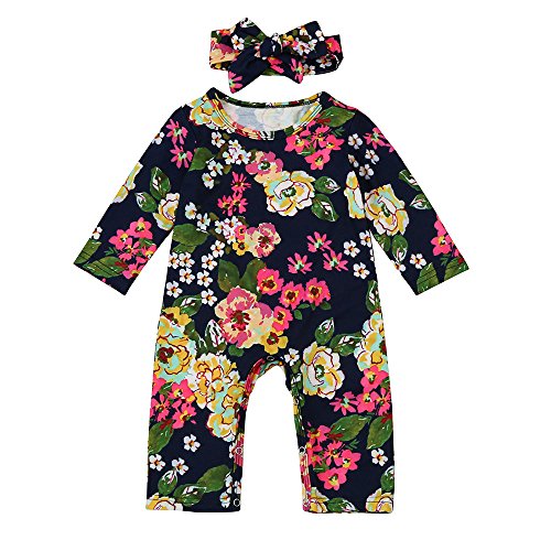 (プタス)Putars ベビー服 子供服 ロンパース 女の子 長袖 総柄 花柄 ヘアリボン付き 可愛い 秋 冬 新生児 歩行服 出産お祝い 記念日 プレゼント 0-18ヶ月