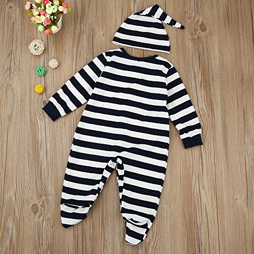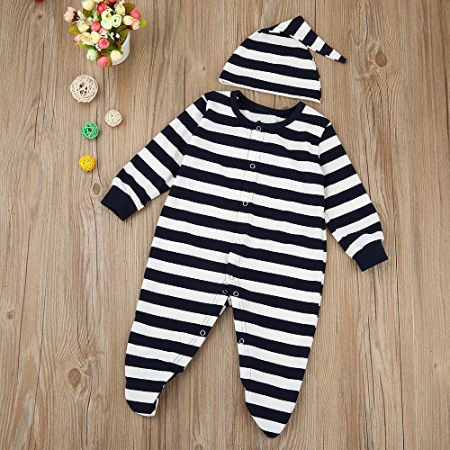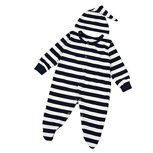 (プタス)Putars ベビー服 子供服 ロンパース 男の子 長袖 ストライプ柄 帽子付き 可愛い 秋 冬 新生児 歩行服 出産お祝い 記念日 プレゼント 0-3歳