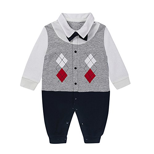 (プタス)Putars ベビー服 子供服 ロンパース 男の子 長袖 スーツ模様 フォーマル 可愛い 秋 冬 新生児 歩行服 出産お祝い 記念日 プレゼント 0-18ヶ月