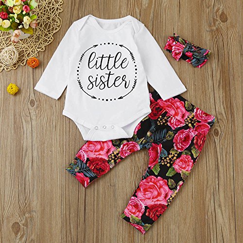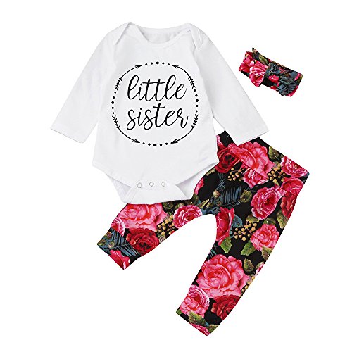 (プタス)Putars ベビー服 子供服 ロンパース 上下セット 女の子 長袖 花柄 LITTLE SISTER 可愛い 秋 冬 新生児 歩行服 出産お祝い 記念日 プレゼント 0-24ヶ月
