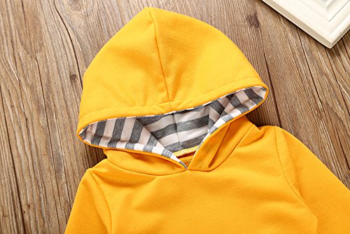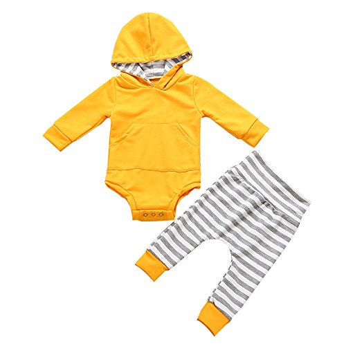 (プタス)Putars ベビー服 子供服 ロンパース 上下セット パーカー 男の子 女の子 長袖 ストライプ柄 イエロー 可愛い 秋 冬 新生児 歩行服 出産お祝い 記念日 プレゼント 0-18ヶ月