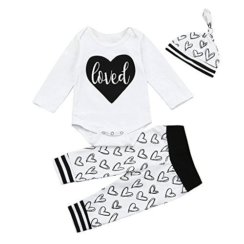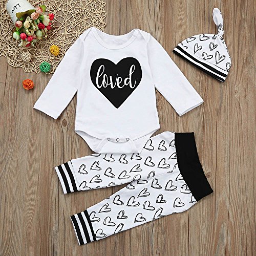 (プタス)Putars ベビー服 子供服 ロンパース 上下セット 女の子 長袖 ハート柄 LOVED 帽子付き 可愛い 秋 冬 新生児 歩行服 出産お祝い 記念日 プレゼント 0-18ヶ月