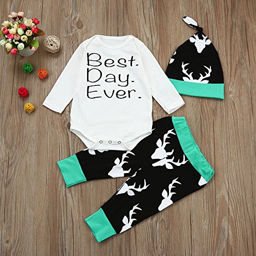 (プタス)Putars ベビー服 子供服 ロンパース 上下セット 女の子 男の子 長袖 鹿柄 BEST DAY EVER 帽子付き 可愛い 秋 冬 新生児 歩行服 出産お祝い 記念日 プレゼント 0-18ヶ月