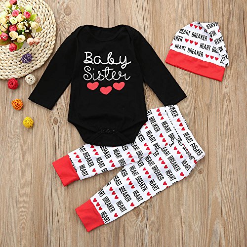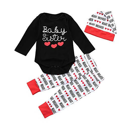 (プタス)Putars ベビー服 子供服 ロンパース 上下セット 女の子 長袖 baby sister ハート柄 帽子付き 可愛い 秋 冬 新生児 歩行服 出産お祝い 記念日 プレゼント 3-18ヶ月