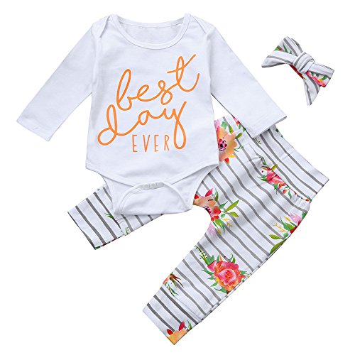 (プタス)Putars ベビー服 子供服 上下セット ロンパース 女の子 長袖 BEST DAY EVER 可愛い 秋 冬 新生児 歩行服 出産お祝い 記念日 プレゼント 0-18ヶ月