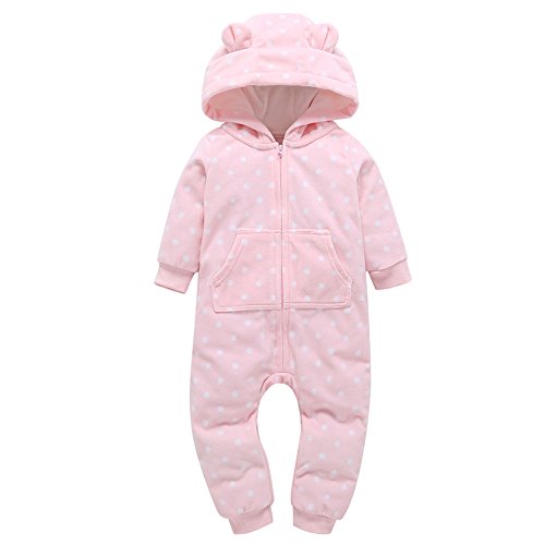 (プタス)Putars ベビー服 子供服 ロンパース フリース 厚手 女の子 長袖 総柄 水玉柄 可愛い 秋 冬 新生児 歩行服 出産お祝い 記念日 プレゼント 6-24ヶ月